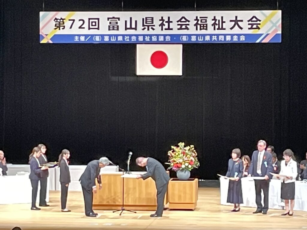 先日10月22日、富山県民会館ホールにて第72回富山県社会福祉大会が行われ、社会福祉協議会会長より感謝状が贈呈されました。